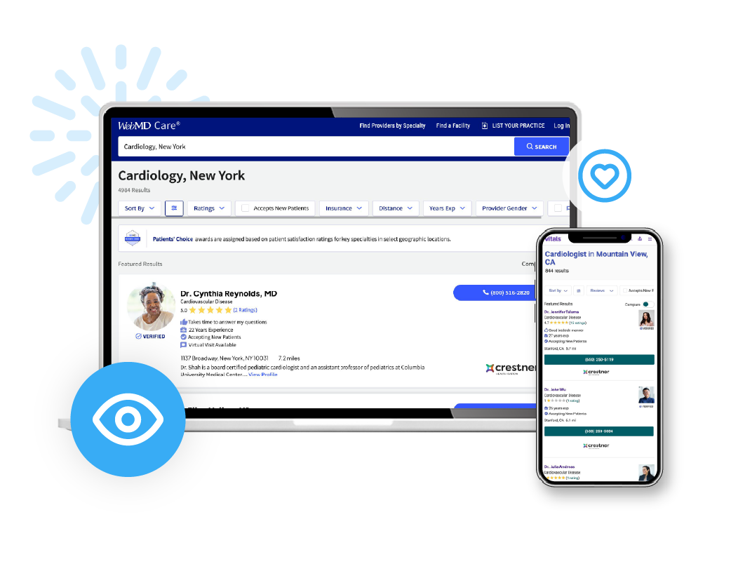 Capture high-intent patients at the moment they choose care. Guaranteed leads from enhanced provider profiles across WebMD and Vitals connect active care seekers to your physicians.
